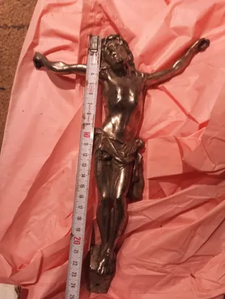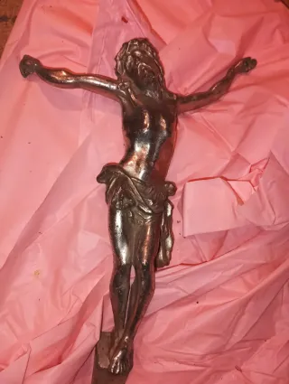 Figura de crucifijo elaborada en plomo. Representa la imagen de Jesucristo en la cruz. - Material: Plomo. - Diseño detallado de la figura. Crucifijo hecho de plomo ,como se aprecia en las imágenes, donde también se ve la medida. Pesa bastante unos dos kilos