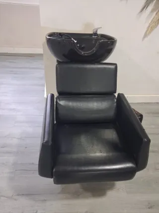 Lavacabezas profesional en color negro, ideal para salones de peluquería. Diseñado para ofrecer comodidad. - Tapicería de cuero sintético. - Brazos cromados. - Cuba inclinable. - Los dos juntos 800€ - Precio por separado uno 500€ y el otro 400€