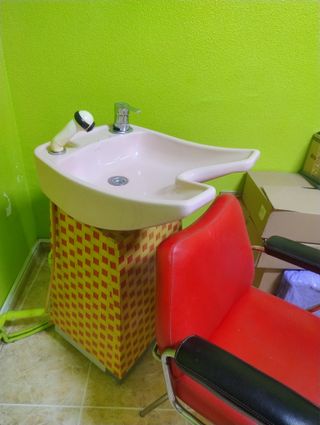 Lavacabezas en muy buen estado, tiene la goma de abajo nueva y los grifos también! También tengo una silla de peluquería reclinable en el perfil, si te la llevas también la dejo a mitad de precio!