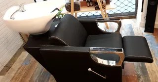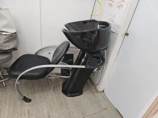 Lavacabezas de diseño moderno, Lo vendo por no usar nada, tuene signos de desgaste en la pintura solo, no tiene nada roto y funciona a la perfeccion - Sillón reclinable con tapicería negra. - Lavabo blanco de cerámica. NO HAGO ENVIOS, SOLO RECOGIDA