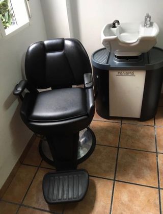 lavacabezas doble, secador de pie, dos tocadores uno de ellos está para restaurar, cuatro sillas son a juego con los sillones hidráulicos de tocador, mueble para guardar cosas muy chulo para poner el equipo de música, con tres cajones para guardar y en su parte final colocar las revistas, y un sillón para niños que está para arreglar, el cual incluyo sin coste alguno, los tocadores también lo incluyo, vendo el lavacabezas, los dos sillones, sus cuatro sillas a juego, el secador que casi no lo utilize, y el mueble que es a juego con todo. Siempre se puede negociar. Verlo. Es un lote que se le saca partido.