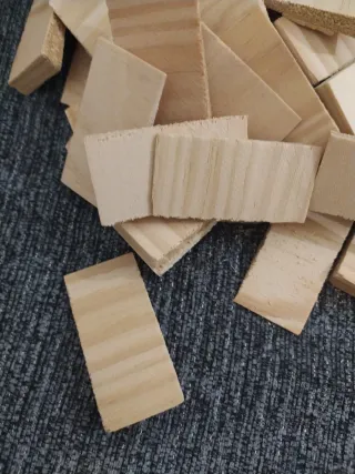 Lote de pequeños bloques de madera sin tratar, perfectos para proyectos de manualidades, construcción o decoración. - Material: Madera de pino. - Acabado natural, sin barnizar ni pintar.