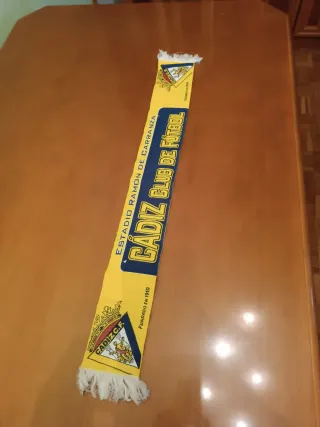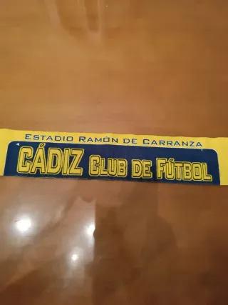 PRECIOSA MINI BUFANDA DEL CÁDIZ BORDADA RAMÓN DE CARRANZA Bufanda del Cádiz Club de Fútbol, conmemorativa del Estadio Ramón de Carranza. - Diseño amarillo y azul. - Escudo del Cádiz C.F. - Fundado en 1910.