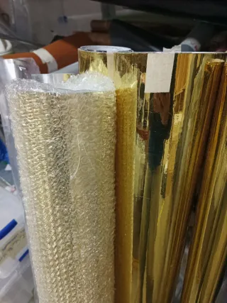 Rollo de vinilo de color dorado brillante. - Acabado metálico. - Ideal para manualidades o decoración. 10€ metro lineal