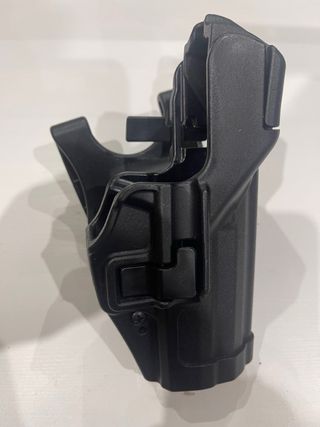 Funda táctica Blackhawk SERPA de nivel 3 para HK USP Compact. Diseñada para un acceso rápido y seguro. - Color negro. - Sistema de retención de nivel 3. -Pala intermedia con separador. -Sin Uso