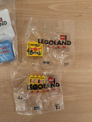 Lote de 6 bloques de construcción Lego de Legoland Japón. Cada bloque tiene un diseño temático. Las bolsas polybad estan selladas. Las que llevan el zip se pueden abrir y cerrar