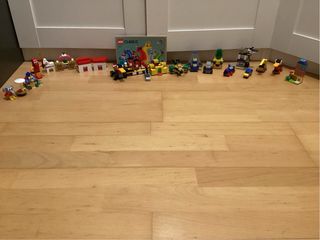 Conjunto de piezas y construcciones de Lego. - Incluye varias construcciones como casas, vehículos y figuras. - Caja de Lego Classic.