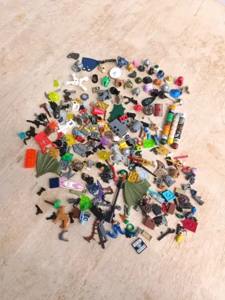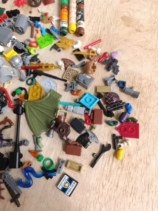 Lote accesorios Lego originales Tal cual fotos. Sega Nintendo lego star wars famosa Nancy lesly chabel feber scalextric exin Warhammer madelman geyperman ibertren Mario Pokémon Pikachu muñecas figuras muñecos motu masters universo paya rico camión tren dragón ball ps1 play station Goku Naruto manga comic airgam farmen juyba