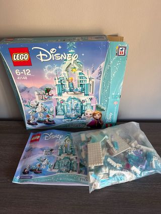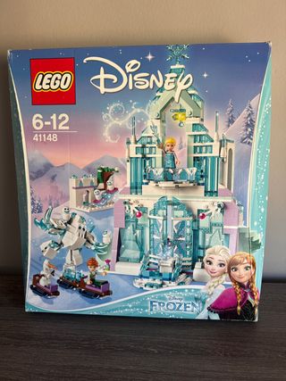 Set de construcción LEGO Disney Frozen, modelo 41148. - Incluye figuras de Elsa, Anna y Olaf. - Castillo de hielo con accesorios. - Recomendado para edades de 6 a 12 años. Montado una sola vez