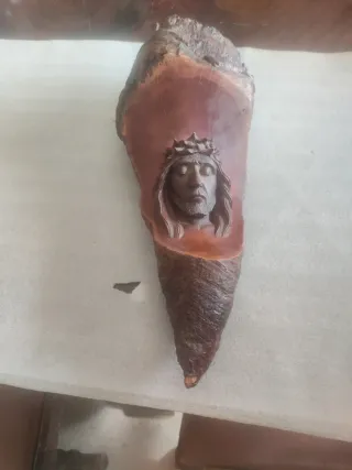 Escultura tallada a mano en madera de Palo Santo. Representa el rostro de Jesús con corona de espinas. - Material: Madera de Palo Santo. - Detalle: Rostro de Jesús con corona de espinas. - Acabado: Natural.