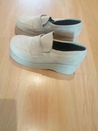 Zapatos de ante en color beige con un diseño moderno y cómodo. - Material exterior de ante. - Suela de plataforma. - Diseño tipo mocasín. N 38