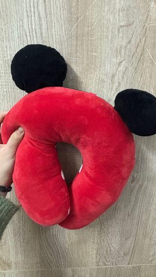 Cojín cervical con el diseño de Mickey Mouse, ideal para viajes o para usar en casa. Su forma ergonómica proporciona soporte al cuello. - Diseño de Mickey Mouse. - Tejido suave y cómodo. - Color negro y rojo con lunares blancos.