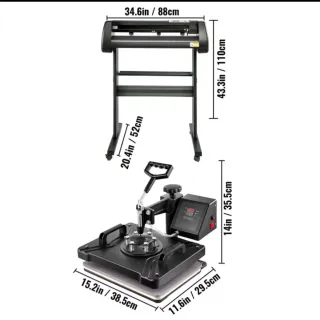Equipo completo para sublimación y corte de vinilo. - Prensa de calor multifunción. 5 en 1 - Cortadora de vinilo con soporte. - Accesorios para tazas y platos. - Cables y herramientas adicionales.