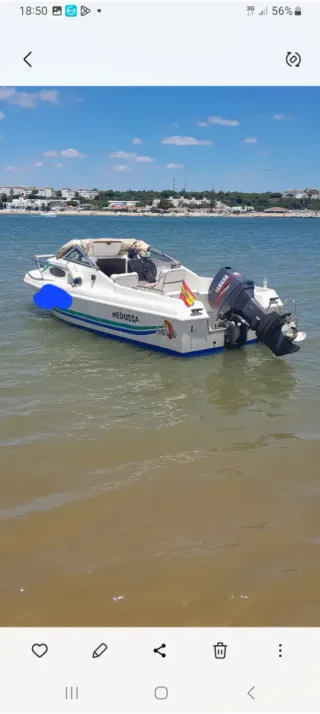 Embarcación lista para disfrutar del mar. - Nombre de la embarcación: MEDUSSA - Motor fueraborda Yamaha 60 cv de 2 Tiempo con mando morse.no tiene arranque electrónico ni powuer Trin..También entra remolque náutico, Todo con documentación en regla.Tiene 5 clalecos salvavidas, vengalas, espejo,extintor, Toldo vimi,radio con altavoces,sonda ,,luces,reson,cuerda,Brújula,emisora , tanque de gasolina 22 litros etc.no mareante