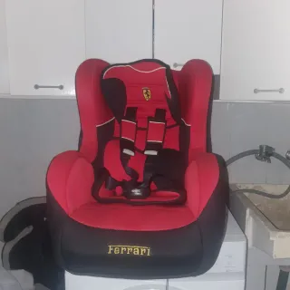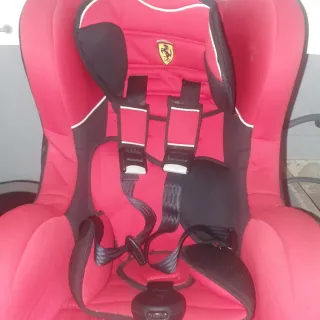 Silla de coche para niños con diseño deportivo de Ferrari. - Color rojo y negro. - Logo de Ferrari en el respaldo. - Cinturón de seguridad de 5 puntos.