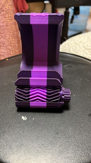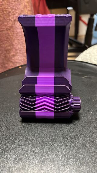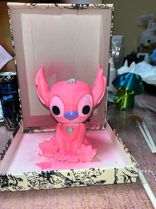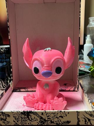 Figura decorativa impresa en 3D con acabado en color rosa. - Diseño inspirado en personaje. - Detalles en morado y gris.