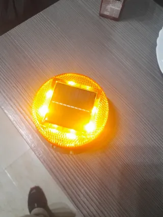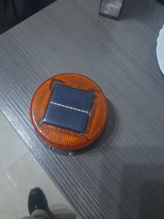 Luz de emergencia circular con panel solar integrado. Su diseño es llamativo y funcional. Hay 2 en total 10 € cada - Panel solar para recarga. - Color naranja reflectante.