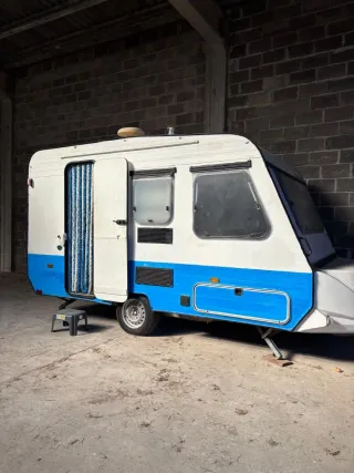 Vendo caravana Adriá Óptima 3,80 de 750Kg del año 1989,no tiene que pasar la ITV, se lleva con el carnet de coche,para 4 personas tiene cama de matrimonio y 2 literas, estabilizador ALKO, rueda de recambio, luz led regulable con mando en el exterior, toldo de verano y avance de invierno, que no se cómo estará porque hace mucho tiempo que no lo monto, la doy con 1 nevera de dos puertas, 1 mesa grande plegable, 1 mesa pequeña plegable, 2 sillas tipo hamaca plegables, 2 sillas pequeñas plegables, 4 taburetes, 2 caballetes, 2 retrovisores para caravana, tiene cerradura de seguridad. Siempre guardada en nave cubierta.TIENE PAPELES.