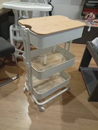 Carrito auxiliar blanco con tapa de madera