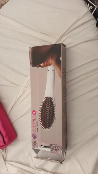 Plancha de pelo con cerdas y cable blanco. - Diseño ergonómico. - Cable de alimentación incluido.