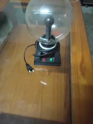 Bola de plasma decorativa con base negra y cable de alimentación. - Esfera de cristal. - Base de plástico negro. - Botones de encendido/apagado.