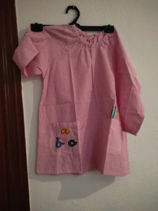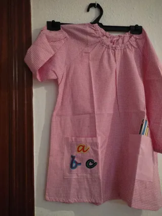 Babi de manga larga para el colegio, con un alegre estampado de cuadros rosas. Ideal para el día a día. - Cuello redondo con elástico. - Dos bolsillos delanteros. - Dibujo de letras 'a, b, c' bordado en uno de los bolsillos.pone talla 3 pero de los hombros hacia abajo mide 61 y de sisa a sisa tiene 47