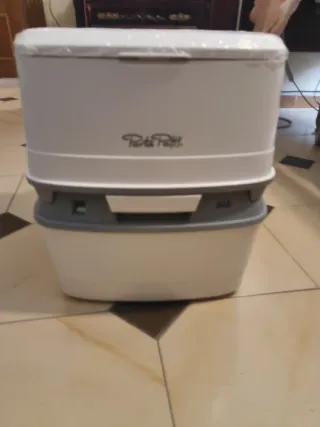 WC portátil de la marca thetfhord . Porta Potti, modelo 365. Ideal para caravanas o camping. Prácticamente nuevo solo usado unas vacaciones - Color blanco y gris.