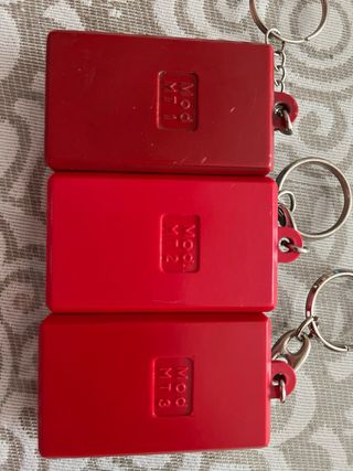 Tres mandos para garaje, marca beninca modelos LO.T - Mando de color gris con botón verde. - Mando de color azul oscuro con dos botones amarillos. - Mando de color azul oscuro con dos botones rojos. - Incluyen cadenas para llavero. Negóciales