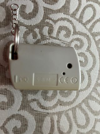 Mando a distancia para garaje con tres botones y un indicador LED. - Color negro. - Incluye cadena para llavero.