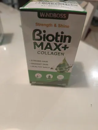 Complemento alimenticio Windboss Biotin MAX+ Collagen. - Fortalece el cabello. - Mejora la piel. - Beneficia las uñas. - Contiene 60 cápsulas.