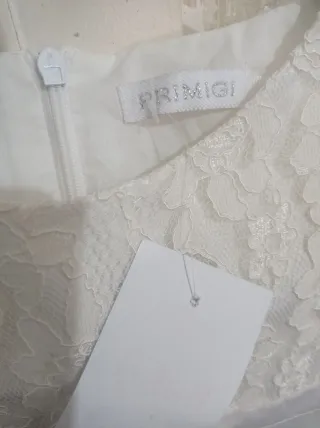 Vestido blanco de la marca Primigi para niña, ideal para ocasiones especiales. - Cuerpo superior con detalle de encaje. - Cintura marcada con lazo. - Falda con caída. - Cierre de cremallera en la espalda.