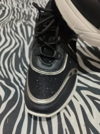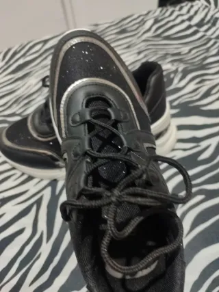 Zapatillas deportivas de color negro con detalles brillantes. - Parte superior de malla con purpurina. - Ribete plateado. - Cordones negros.