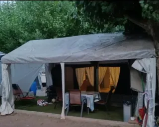 Caravana Sun Roller 430 del año 2001 fija en el Camping Borda Farreró (Sort) camping muy económico y todo el año abierto. La base del avancé y la cocina formada de una estructura de hierro y tableros, parquet dentro del avancé, carpa, lona protectora con forespan para el tema de la condensación, césped artificial, en perfectas condiciones.