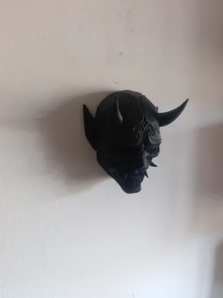 Máscara decorativa con diseño de Oni, impresa en 3D. - Color negro. - Material PLA.