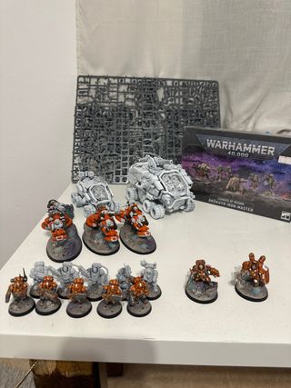 Conjunto de miniaturas de la facción League of Votann para Warhammer. Incluye : -Hekaton (imprimado con arma imantada) -sagitaur (imprimado arma sin pegar) -20 warrior (10 en matriz) -3 motos -uthar (pintado) -campeon einhyr -brokhyr iron-master (en caja)