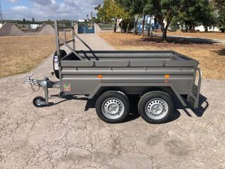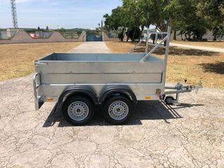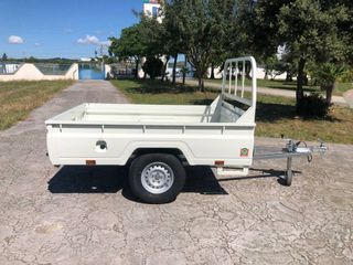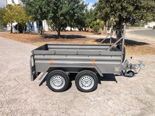 Medidas: 2280x1380x630mm. Galvanizado 2 ejes de 750 kg. 5 ruedas 155/80R13. (500kg C/U) Rueda jockey de 60mm atornillada. Puerta tarsera abatible y desmomtable. Montacargas delantero desmontable. M.M.A: 750KG. (Posibilidad de homologar Según necesidad) PRECIOS: Fábrica Lora del Río, (Sevilla) Doble eje sin freno 1.720€ Doble eje con freno 2.185€ Madrid: +120€ OPCIONES: Arquilladas desmontable 195€ Lona plastificada 270€ Madrid: +150€ IVA NO INCLUIDO Contacto: 616489430