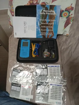 Electroestimulador I-TECH MIO-CARE para TENS/EMS. Incluye manuales y accesorios. - Dispositivo MIO-CARE. - Manuales de uso y posiciones. - Cables de conexión. - Adaptador de corriente. - Bolsas de electrodos reutilizables.esta todo sin estrenar