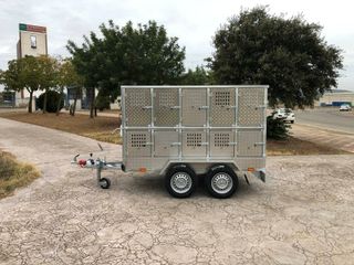 Medidas: 2500x1400x700mm. 2 ejes con freno de 750kg. 5 ruedas 155/80R13 (500kg C/U) Enganche en V con freno de inercia y estacionamiento Rueda jockey de 60mm con brida atornillada Tapa abatible. Baca. 8 compartimentos con respiraderos regulables en puertas. Garrafa de agua. Piso de tablero fenólico embutido. Puerta trasera abatible. (Homologado a 750kg) Separadores de malla opcionales: +350€ PRECIO: Fábrica Lora del Río, (Sevilla): 3.280€ Porte delegación (Madrid): +150€ IVA NO INCLUIDO Posibilidad de envío a Las Palmas y Tenerife Contacto: 616489430