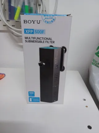Filtro sumergible multifuncional de la marca Boyu, modelo XFP 500F. - Caudal de 500 L/H. - Apto para acuarios. - Diseño compacto y eficiente. Ideal para peceras, fuentes de agua, tortugas...