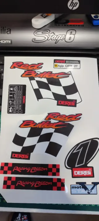Kit de pegatinas para Derbi Variant. - Incluye pegatinas DS Rotulación. - Incluye pegatinas Derbi recomienda Motul. - Incluye pegatina de casco.
