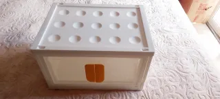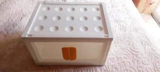 Práctica maleta organizadora de plástico blanco con tapa. - Diseño con huecos en la tapa. - Laterales transparentes.