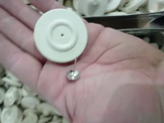 Lote de alarmas de seguridad para tiendas, de color blanco. - Diseño circular con pin. - Material plástico resistente.