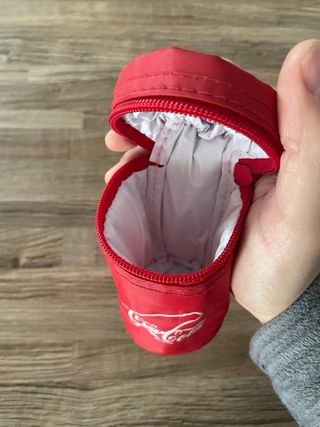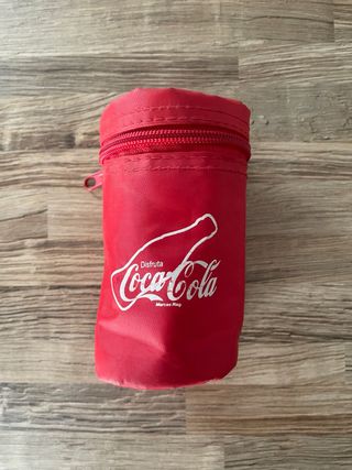 Estuche térmico de color rojo con el logo de Coca-Cola. - Diseño con botella de Coca-Cola. - Cierre de cremallera.