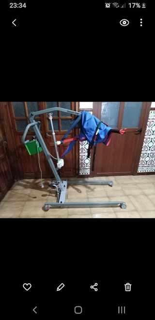 Se vende grúa para el manejo de personas que tienen movilidad reducida. Apta para levanta hasta 175 kg. Se adaptó para que funcionara sin batería y es eléctrica. Se vende por fallecimiento.