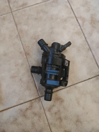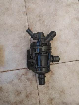 Bomba de agua con termostato de renault Megane 1.5 DCI 2019-2025 Ref 212009132R - Pieza negra de plástico. - Conexiones para mangueras. - Etiqueta con código QR y números de serie.