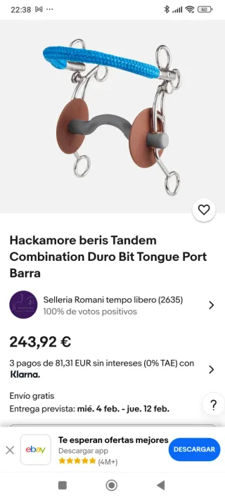 Hackamore Tándem Beris de material duro y con desveno. Prácticamente nuevo. Usado en sólo una ocasión pues resultó ser muy fuerte para mi yegua. Ideal para caballos fuertes pero que no aguantan hierros muy duros en la boca. Precio original rondando los 200 euros (como puede verse en las fotos) - Material duro. - Con puerto - Color gris - medida 14 cm