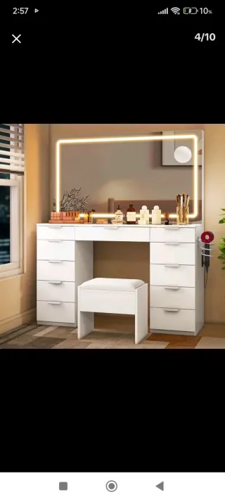 Tocador de maquillaje con espejo y cajones. - Diseño moderno y funcional. - Acabado en blanco. - Incluye espejo. - Varios cajones para almacenamiento.