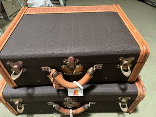 2 maletas a juego de cuero años 80, buen estado una es tamaño maleta de mano y la otra mas grande las dos van a juego. En mi perfil hay más maletas antiguas y vintage.