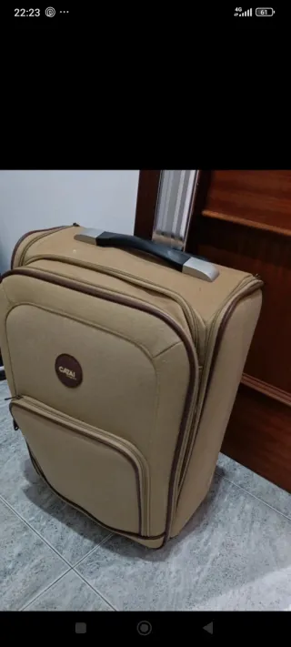 Elegante maleta de viaje con el distintivo estampado de la marca. - Diseño clásico y funcional. - Asa extensible para facilitar el transporte. - Acabados en piel. - Ideal para escapadas cortas. tiene una manga de mano que está rota hay que areglar los demás todo perfecto