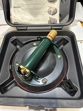 Ventosa de succión para el transporte seguro de cristales y otros materiales lisos y no porosos. Permite levantar y mover objetos pesados con facilidad. Azulejos baldosas etc Es de 20 cm de diámetro con bomba de vacío, está nueva prácticamente, con su maleta - Mango ergonómico para un agarre firme. - Mecanismo de liberación rápida. - Construcción robusta para mayor durabilidad.